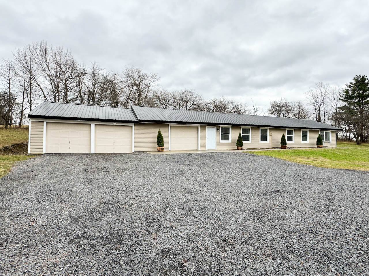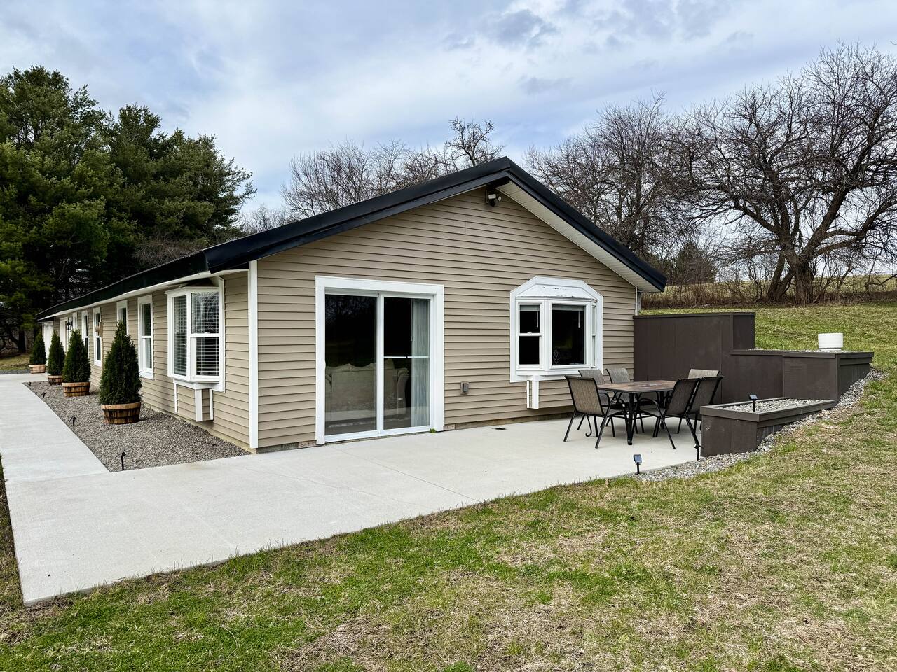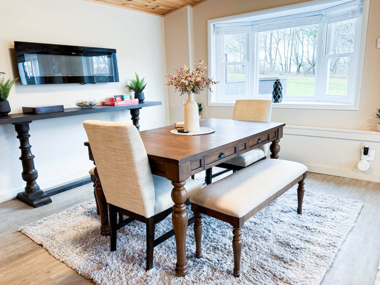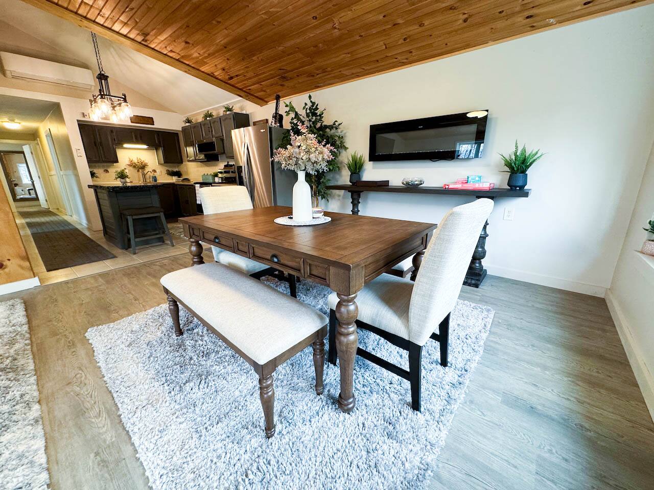 Welcome to your cozy countryside retreat! This fully renovated, single-level home offers comfort and convenience for guests of all ages. Each of the three bedrooms features brand-new mattresses and bedding, ensuring a restful stay. The kitchen is fully stocked with new kitchenware, and fresh towels are provided. Relax in the inviting living space, enjoy peaceful wooded views, or gather for a BBQ on the patio. Stay comfortable year-round with a new mini-split AC unit. Games included for extra fun!