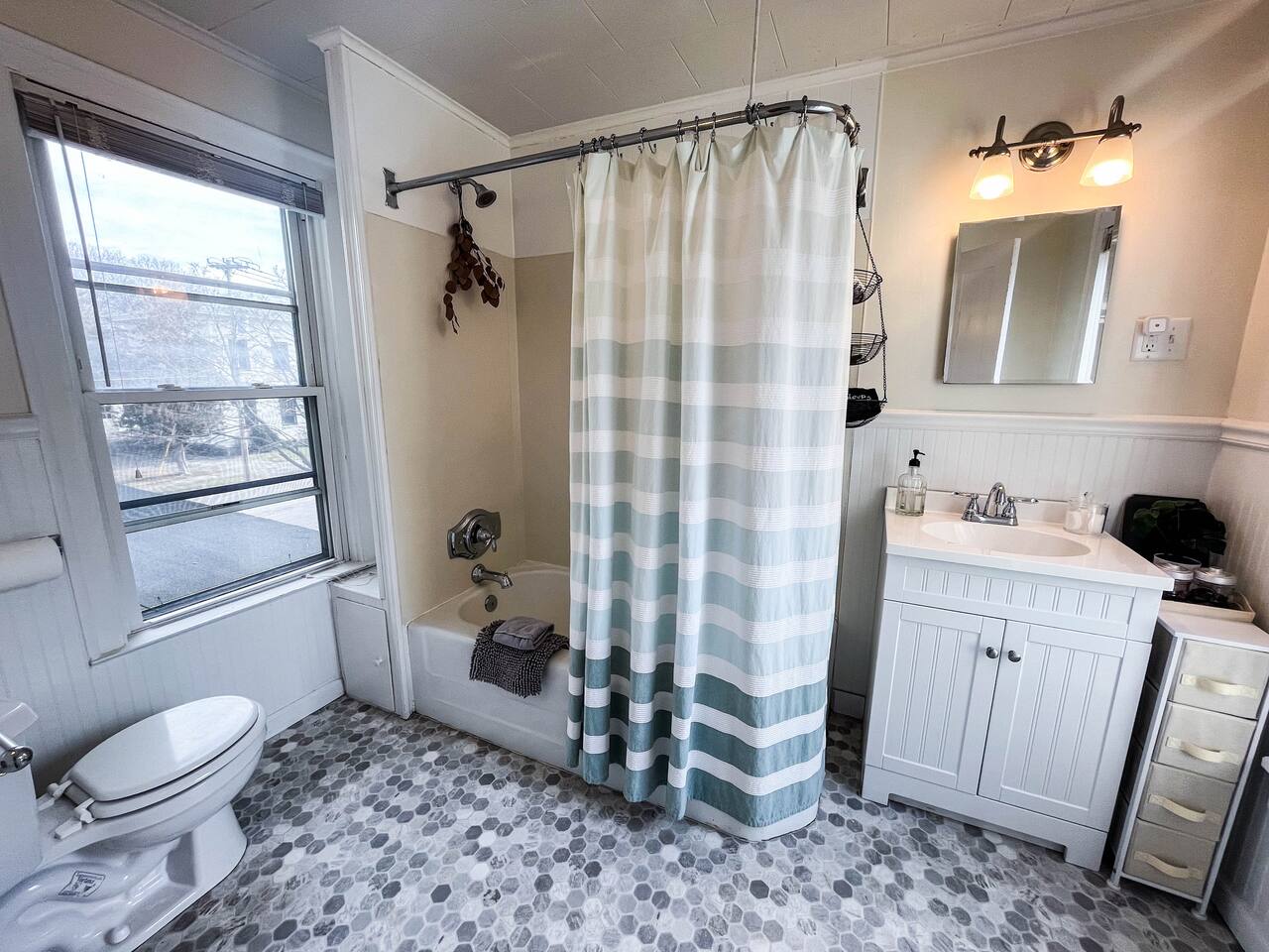 Your family will be in the heart of the historic and business districts, the location can't be beat. Just a 1-2 block walk to local restaurants and a movie theater in downtown Oswego and the Oswego River. Lake Ontario is a 15 minute beautiful walk or just a couple minute drive. This 3,200 sq ft six bedroom house has two floors, each with a big, fully equipped kitchen, 1 bathrooms, and three bedrooms. There is a second (half) bath on the first floor as well. Beautiful and well stocked!