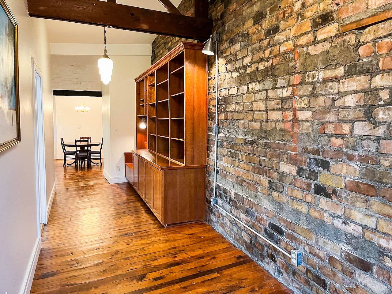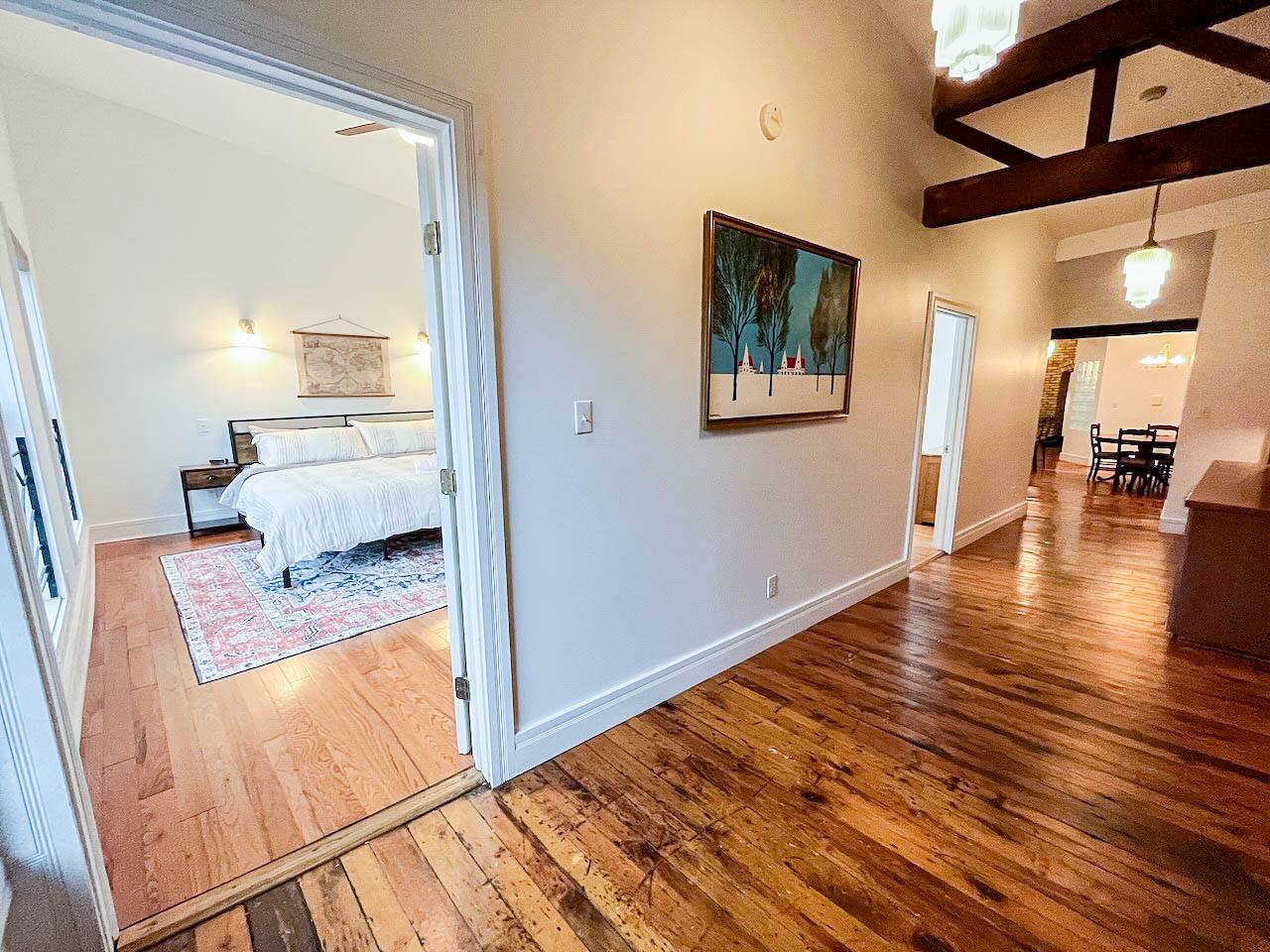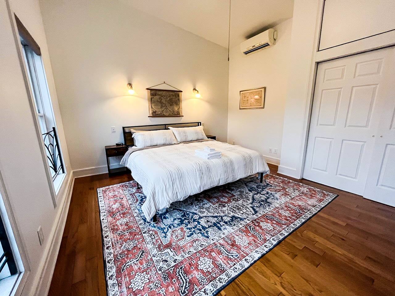 Welcome to our charming 4th-floor apartment. Nestled within, you'll find an expansive retreat boasting airy ceilings and rustic brick walls that lend an authentic touch to the space. Step into the heart of the home – an open kitchen that has been stocked with all the things you need for quick meals, afternoon coffee, or evening cocktails. Three inviting bedrooms: 1 kind sized bedroom, 1 queen bedroom that attaches to a bathroom, and a bedroom with a twin bed and bonus twin trundle bed. Two thoughtfully designed bathrooms await your choice of indulgence. Immerse yourself in relaxation with a soak in the jetted bathtub, or opt for the refreshing stand-up shower. As day turns into night, bask in the serenity of this spacious sanctuary, the perfect base for your adventures. Here, the 4th floor becomes a vantage point to both urban allure and peaceful reprieve, promising a unique sojourn that transcends ordinary stays. City of Ithaca STR-25-77