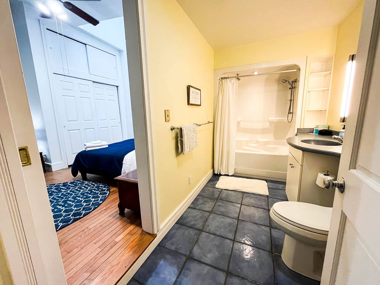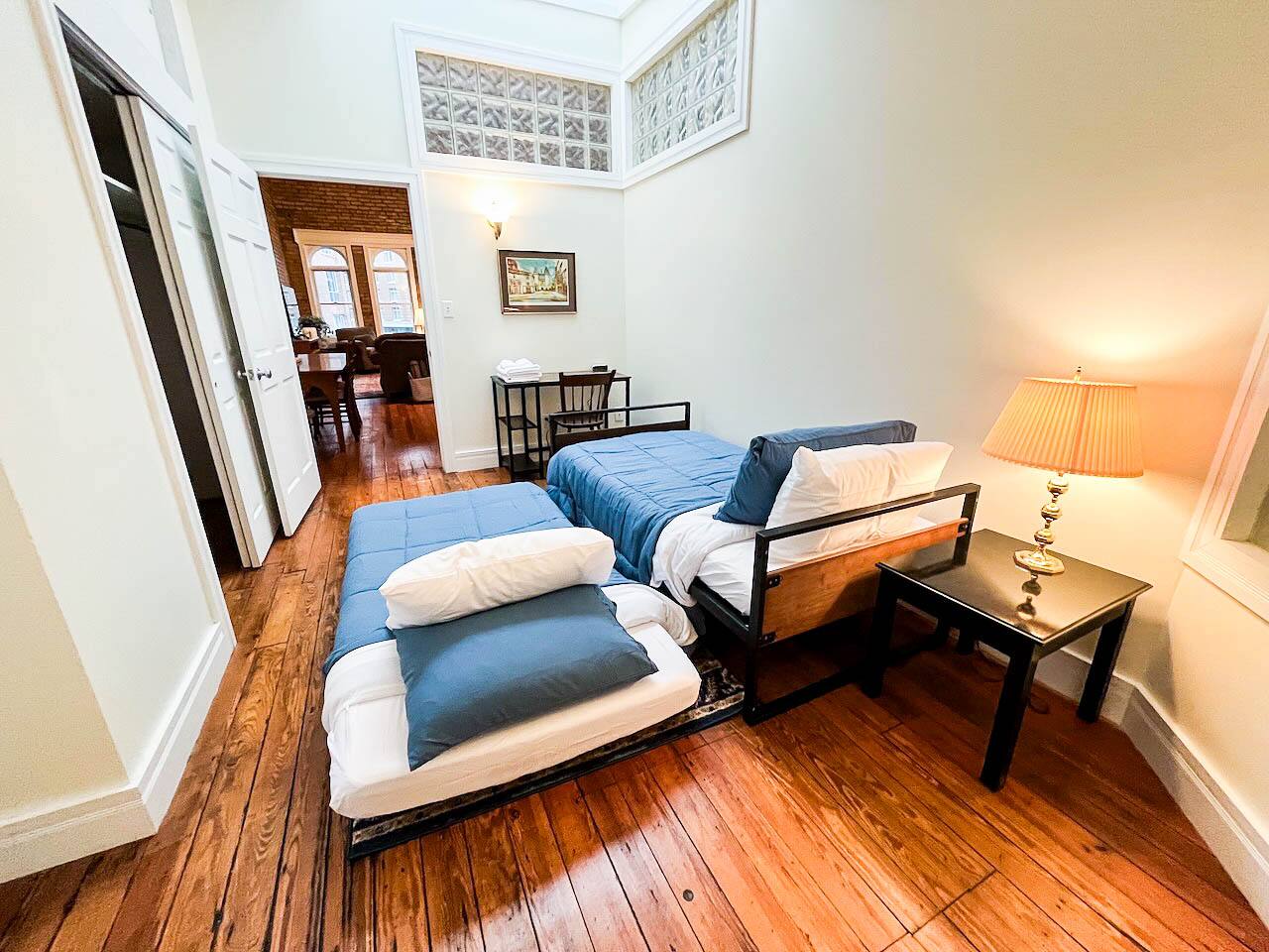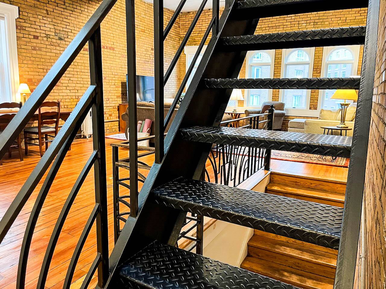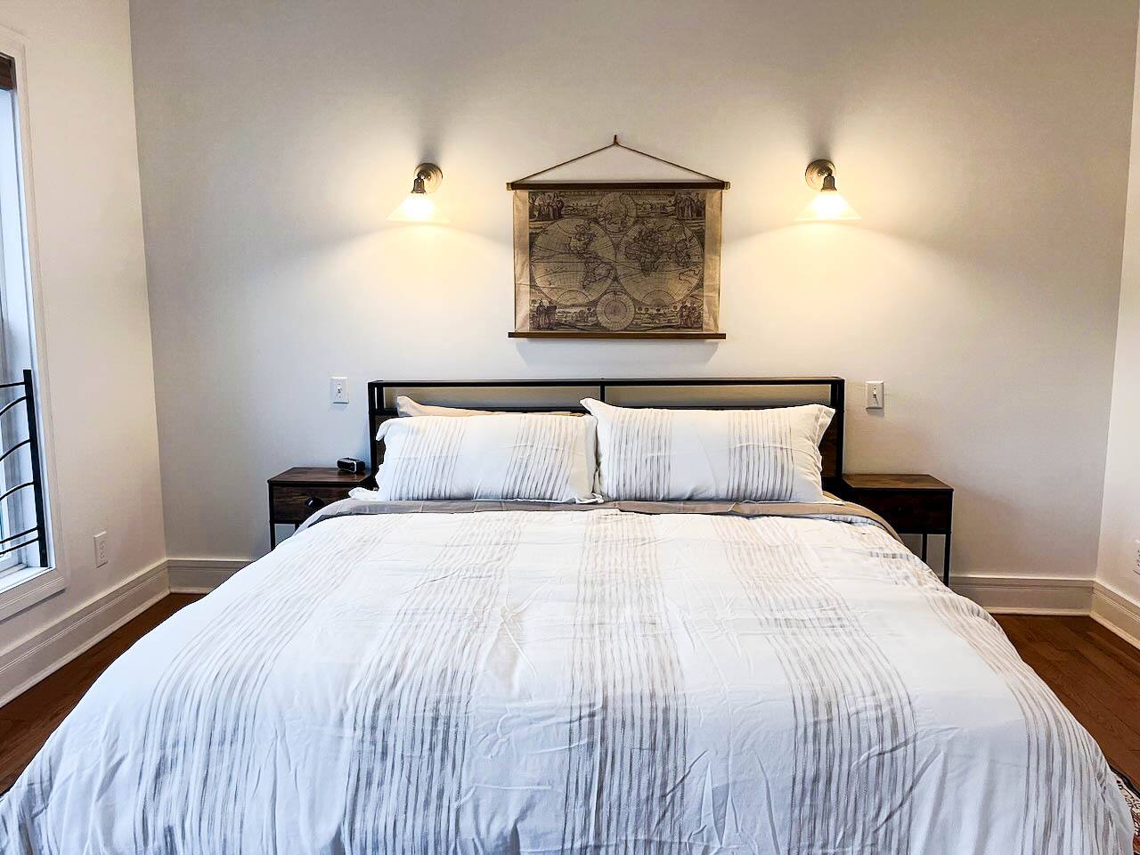 Welcome to our charming 4th-floor apartment. Nestled within, you'll find an expansive retreat boasting airy ceilings and rustic brick walls that lend an authentic touch to the space. Step into the heart of the home – an open kitchen that has been stocked with all the things you need for quick meals, afternoon coffee, or evening cocktails. Three inviting bedrooms: 1 kind sized bedroom, 1 queen bedroom that attaches to a bathroom, and a bedroom with a twin bed and bonus twin trundle bed. Two thoughtfully designed bathrooms await your choice of indulgence. Immerse yourself in relaxation with a soak in the jetted bathtub, or opt for the refreshing stand-up shower. As day turns into night, bask in the serenity of this spacious sanctuary, the perfect base for your adventures. Here, the 4th floor becomes a vantage point to both urban allure and peaceful reprieve, promising a unique sojourn that transcends ordinary stays. City of Ithaca STR-25-77