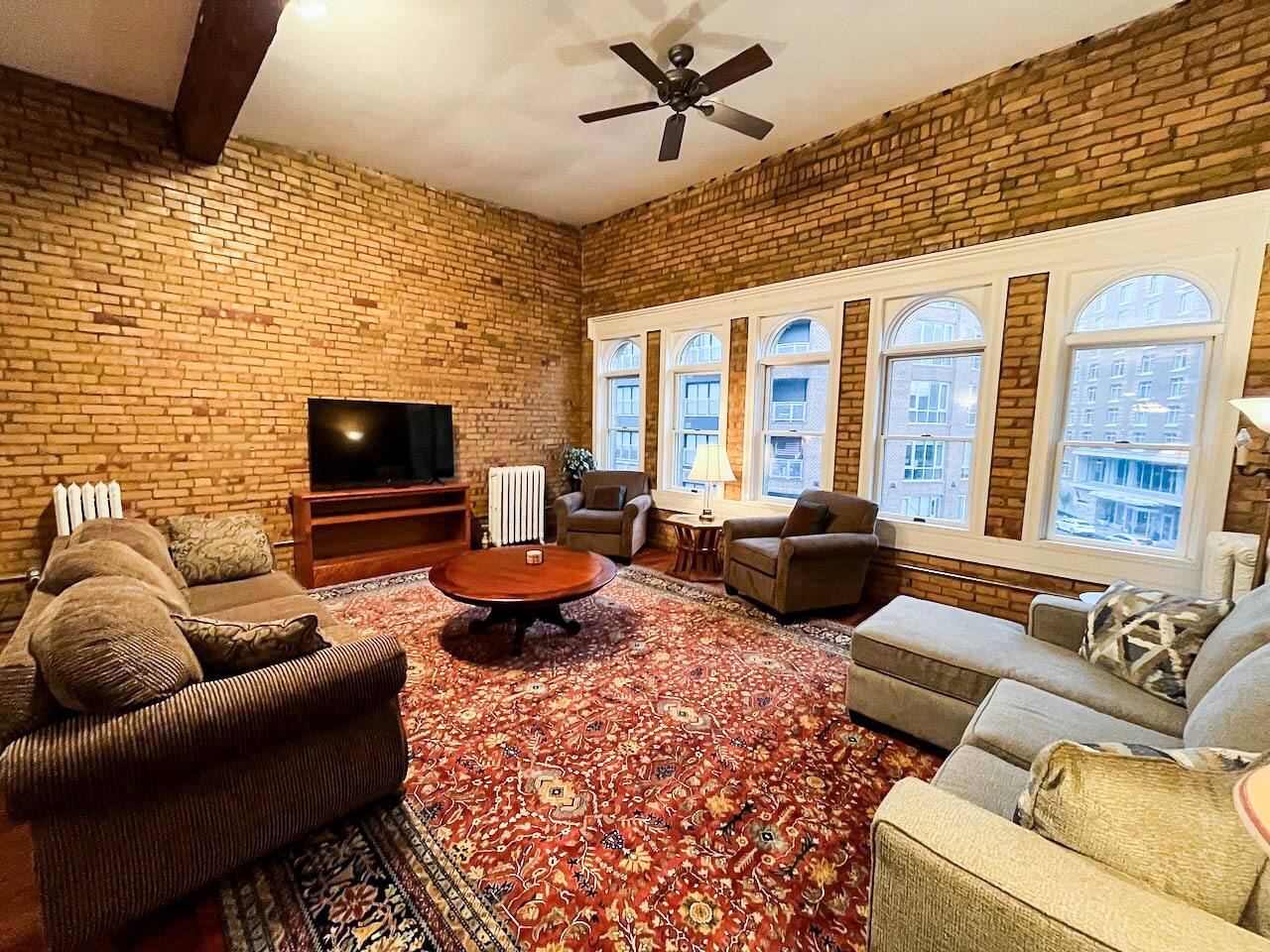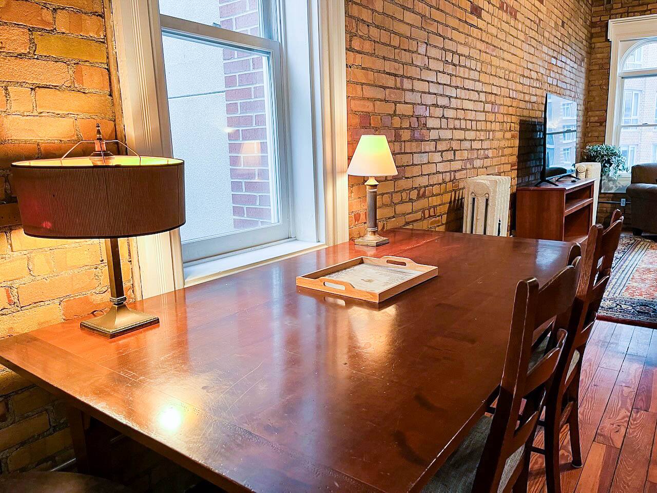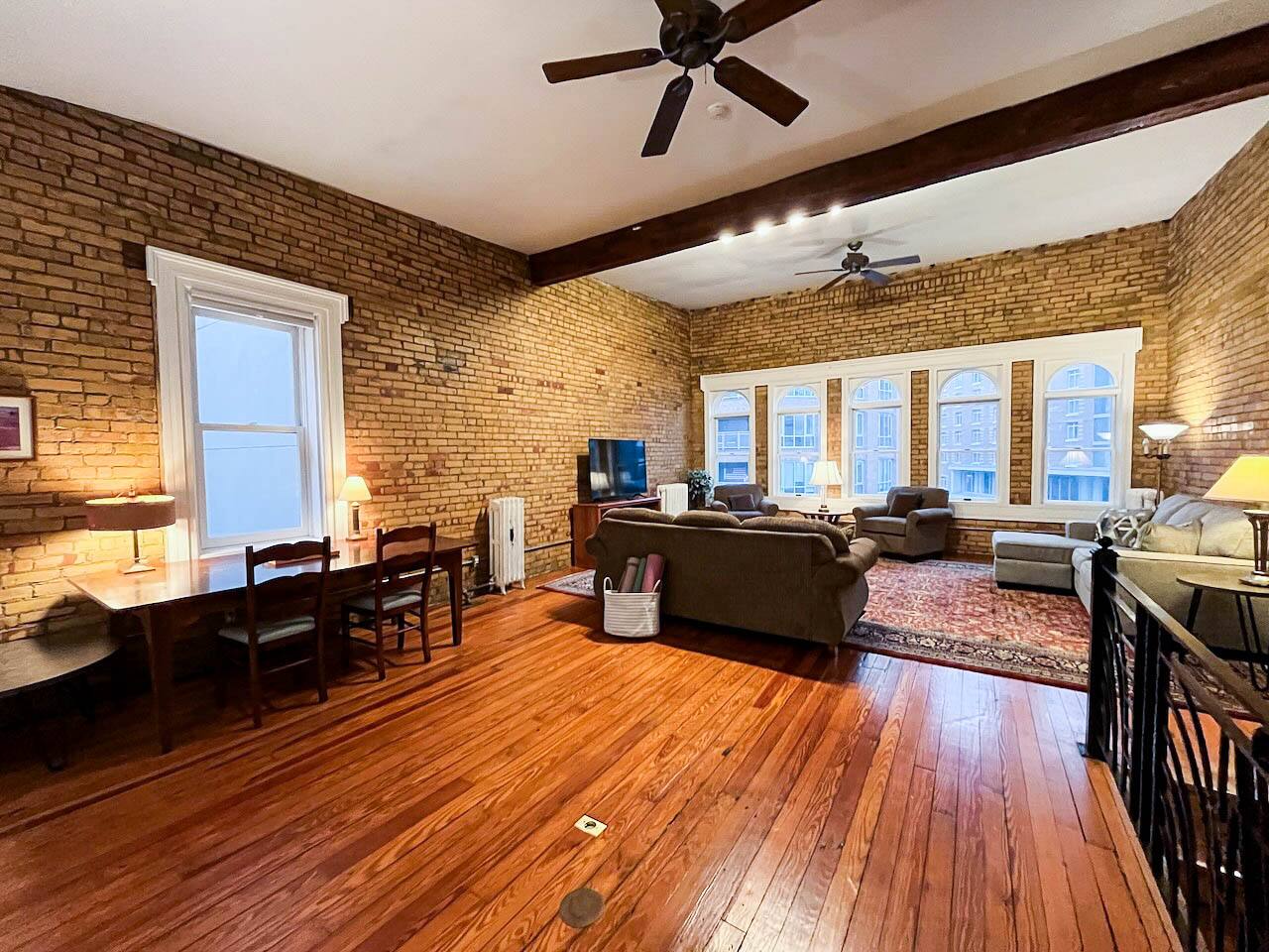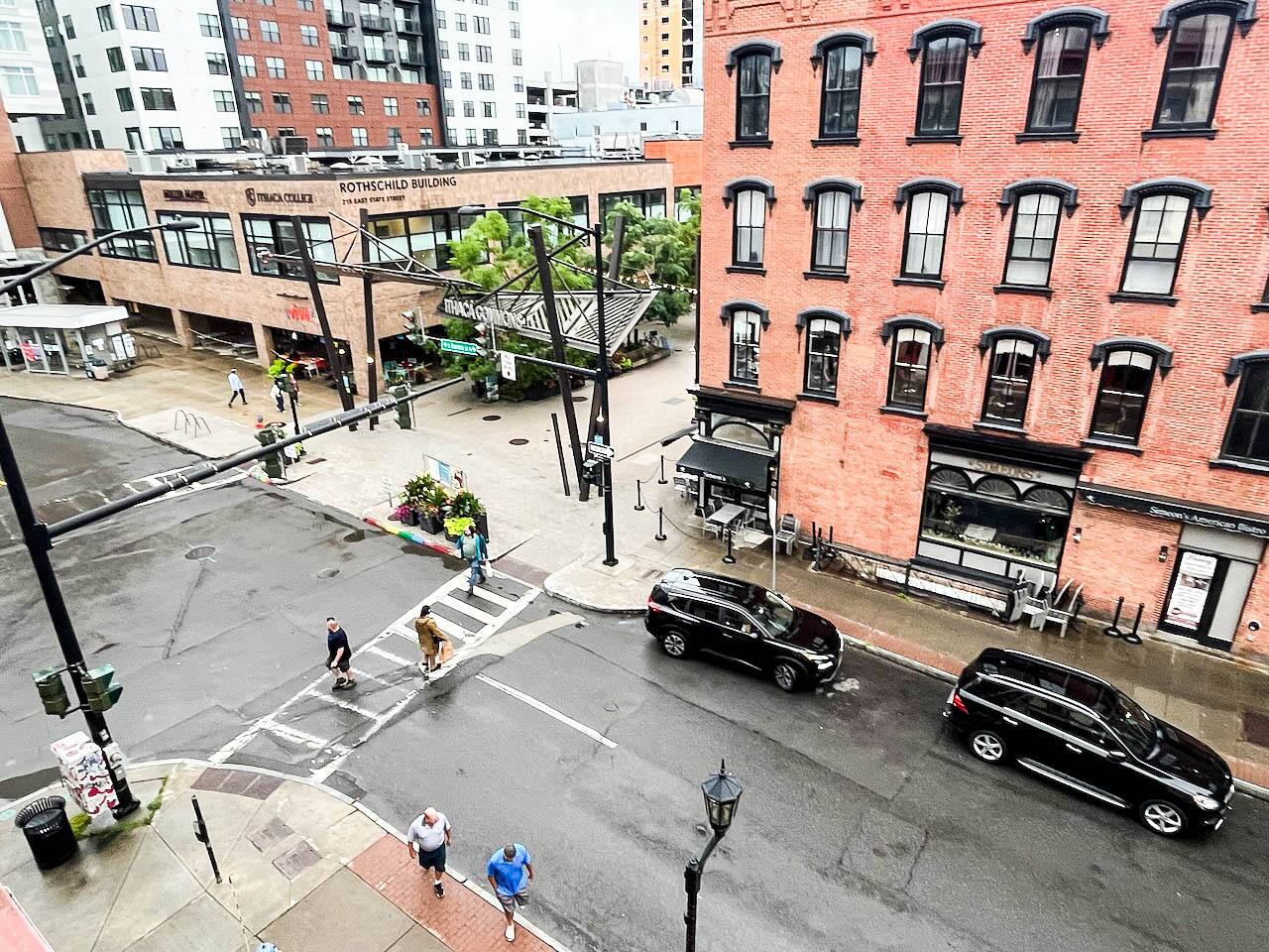 Discover the allure of our historic 3-bedroom, 2-bath apartment situated in the heart of downtown Ithaca, right across the street from the Ithaca Commons. Steps away from shopping, dining, and local events, this apt is near it all. The 4th floor apartment boasts brick walls that exude character, while offering a spacious and central retreat. Unwind in comfort after exploring the city's offerings. Your Ithaca adventure begins here. 1 king bedroom, 1 queen bedroom, and 2 twin trundle bedroom.