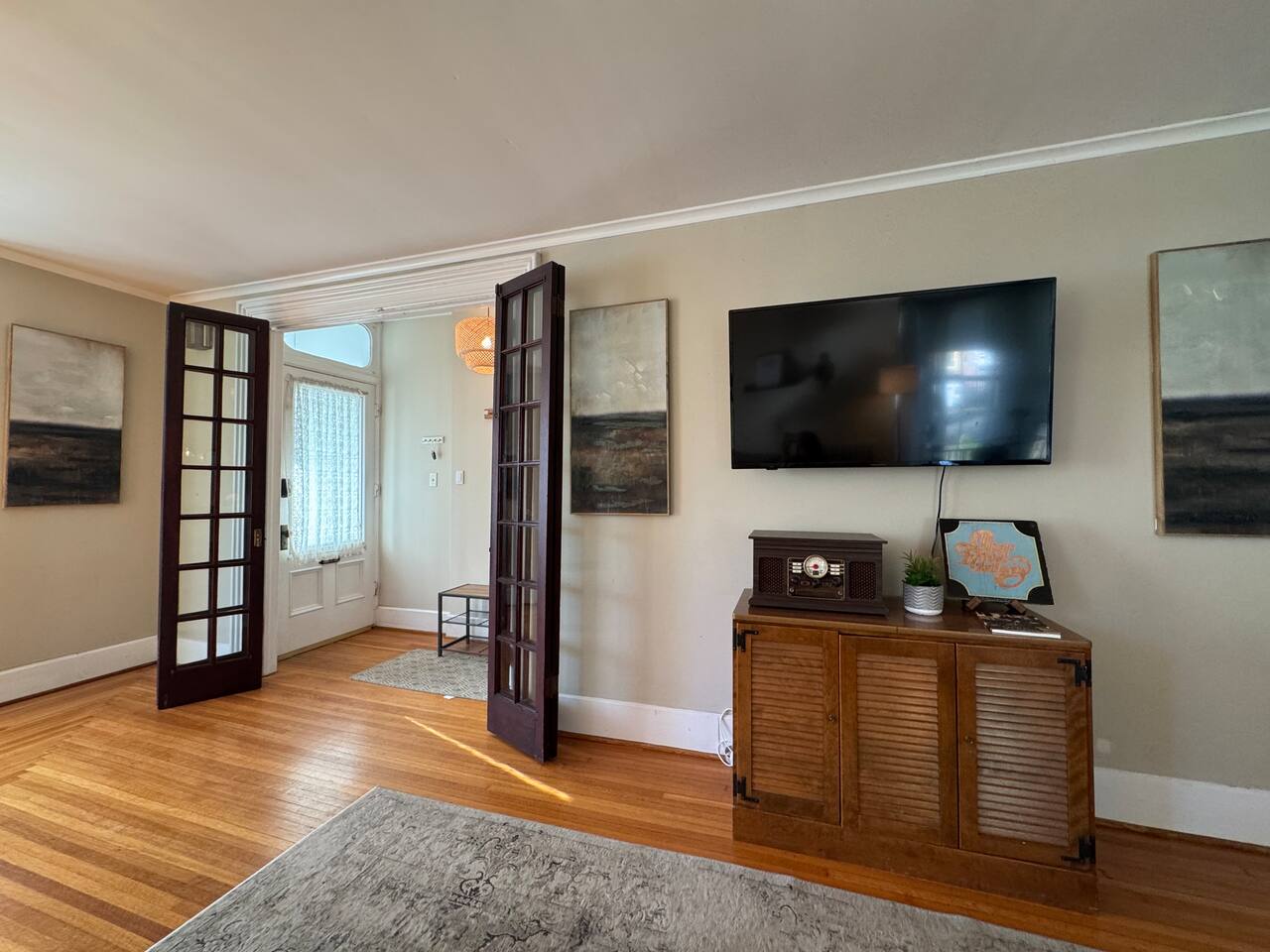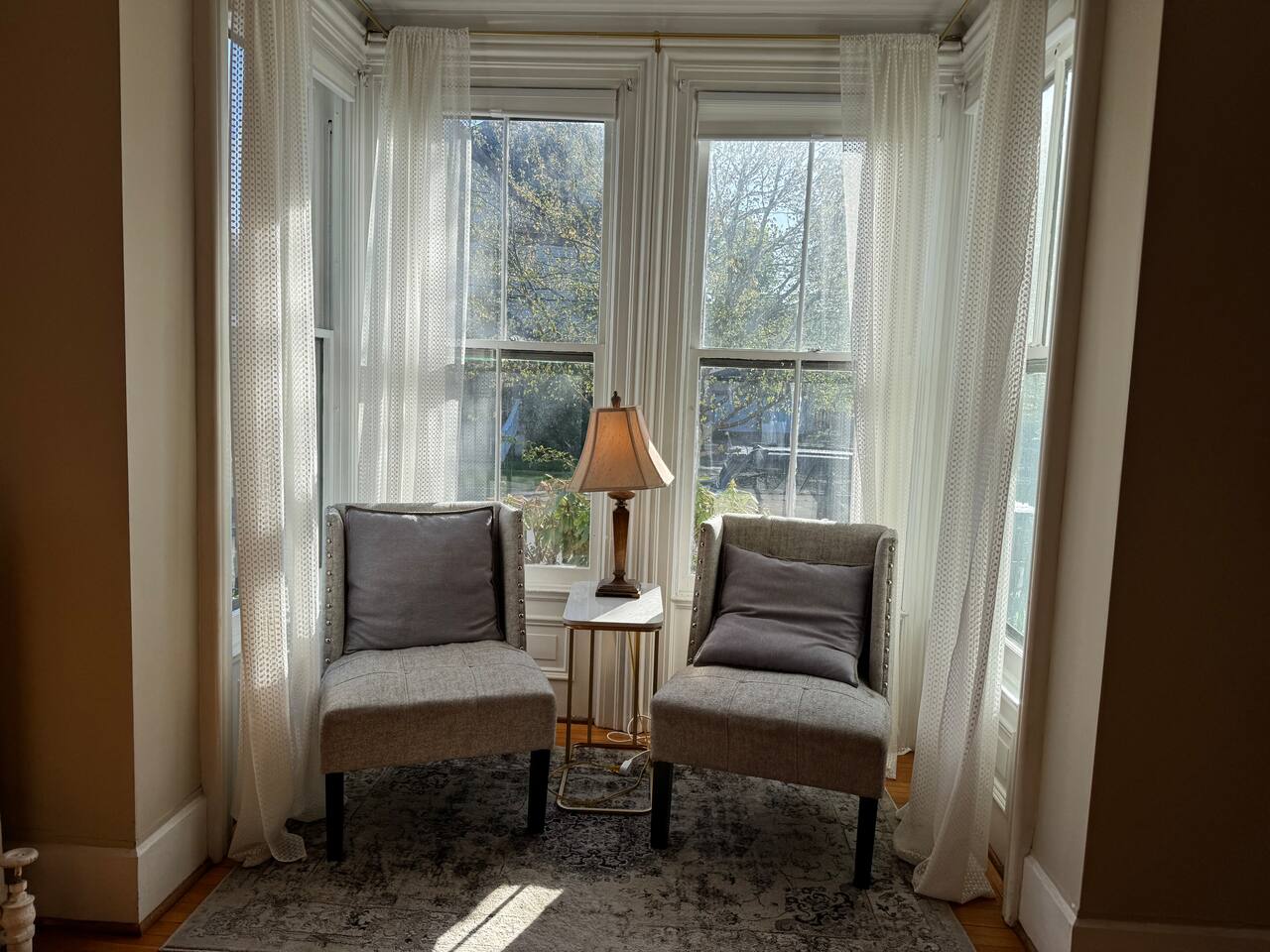 You will have access to the entire first floor. This is a 2 unit home, however you will have your own privacy with a separate front entrance. There is a sliding back door to a small deck and backyard that is for use by our guests who rent out the first floor only. There is also a small Juliet porch that is accessed only through the dining room.