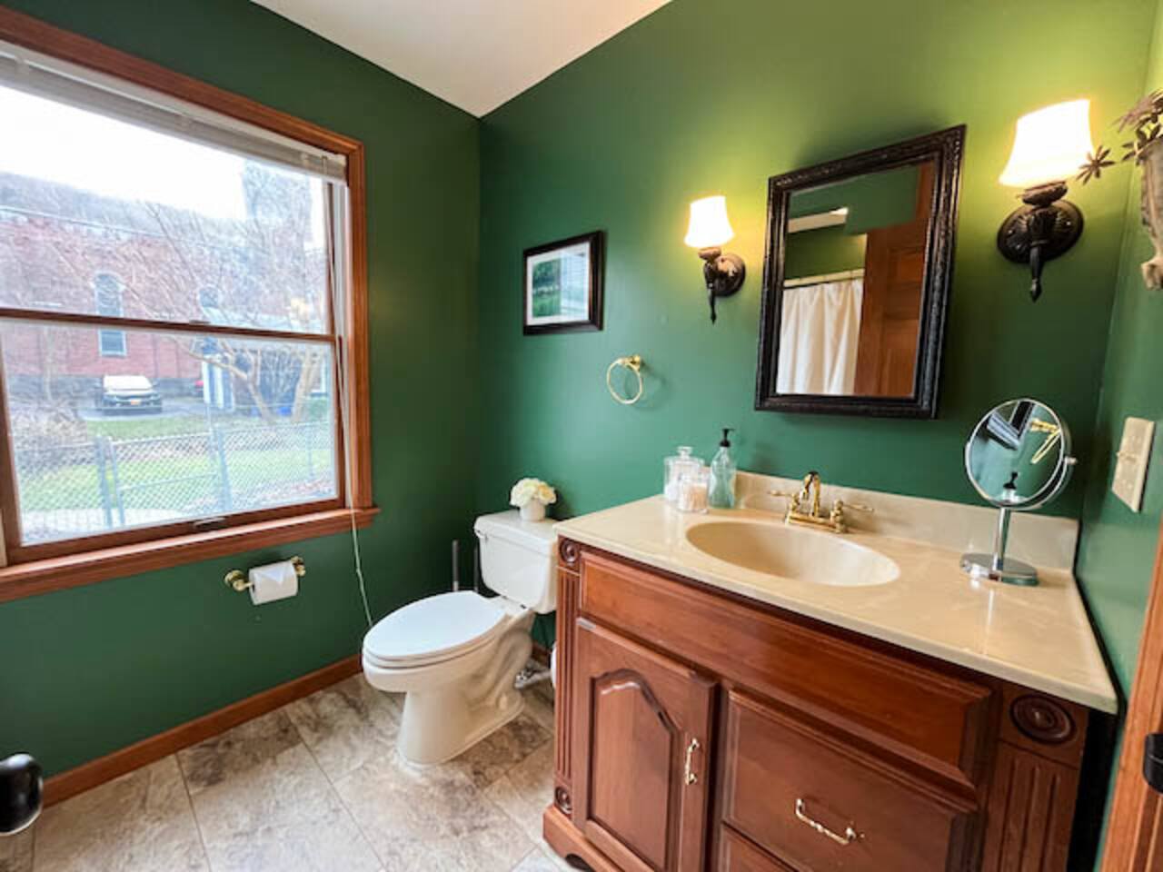 Your family will be in the heart of the historic and business districts, the location can't be beat. Just a 1-2 block walk to local restaurants and a movie theater in downtown Oswego and the Oswego River. Lake Ontario is a 15 minute beautiful walk or just a couple minute drive. This 1,800 sq ft three bedroom unit has a big, fully equipped kitchen, 1.5 bathrooms, a bunk room, a master bedroom w/ queen bed, and a 3rd bedroom with double bed.