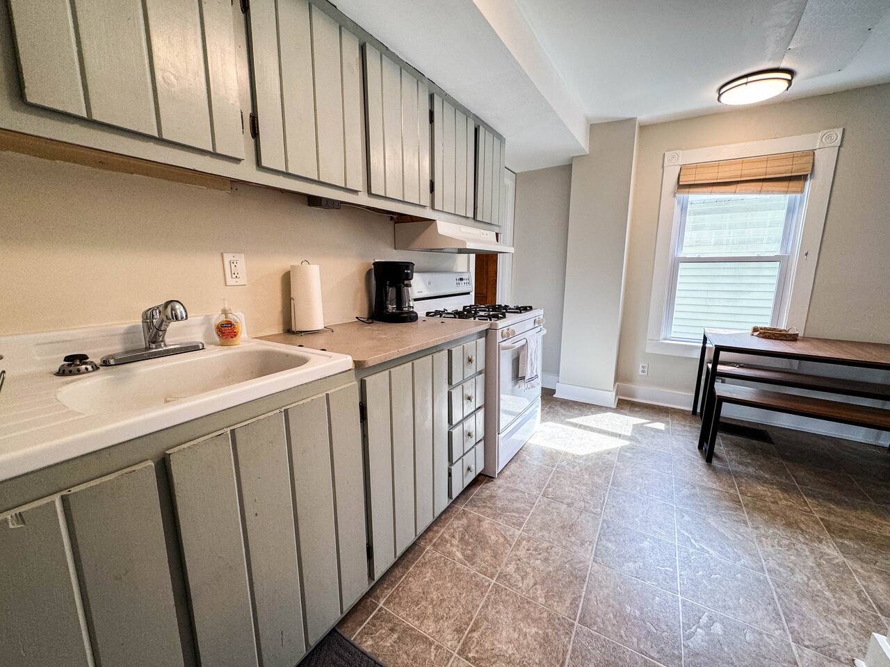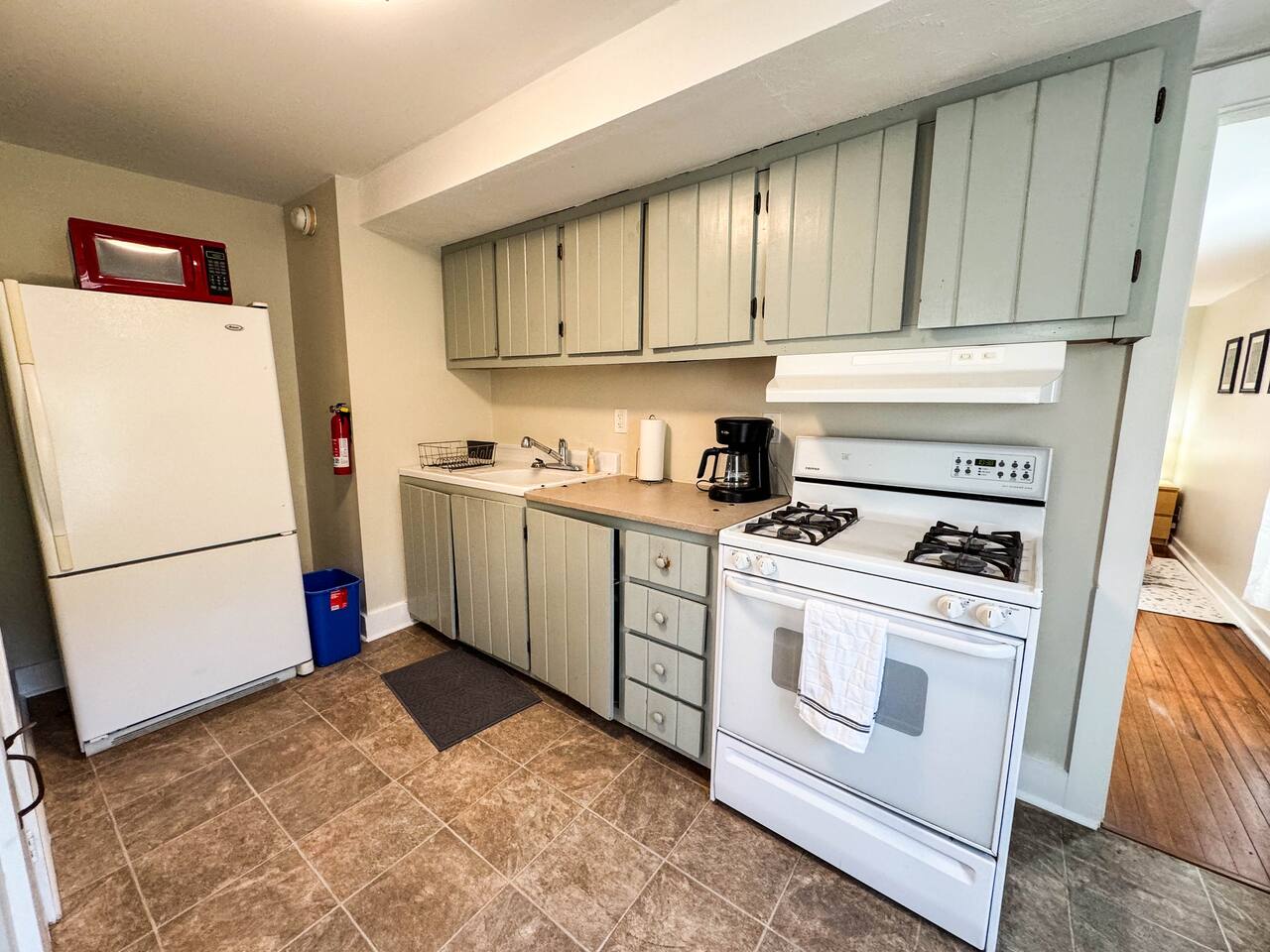Welcome to our charming downtown Ithaca retreat! Step into our cozy first-floor apartment, where a welcoming front sitting porch sets the tone for relaxation. The spacious living room invites you to unwind, while the eat-in kitchen is equipped for convenient meal preparation. Discover comfort in the bedroom featuring a double bed and a recently updated bathroom. Enjoy new lighting, bedding, and various modern amenities throughout this historic home. Although the bedroom offers access to the backyard, most guests prefer the convenience of the front entrance. Experience historic charm with contemporary comforts during your stay!